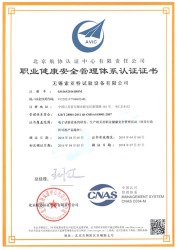 職業(yè)健康安全管理體系證書(GB/T28001-2011)